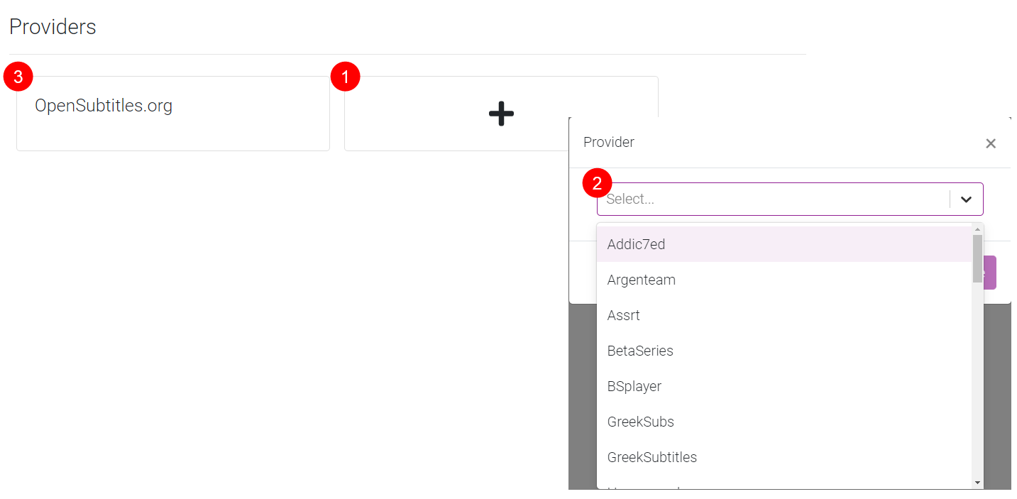 2. Select the subtitle providers you would like to enable. It is best to select multiple providers and create/use an account with them especially when you got a lot of wanted subtitles. Some subtitle providers require an extra paid Anti-Captcha Service.