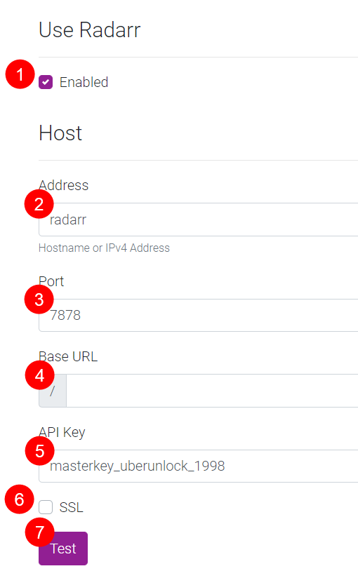 3. Enter the TCP port of your Radarr instance. Default is 7878.